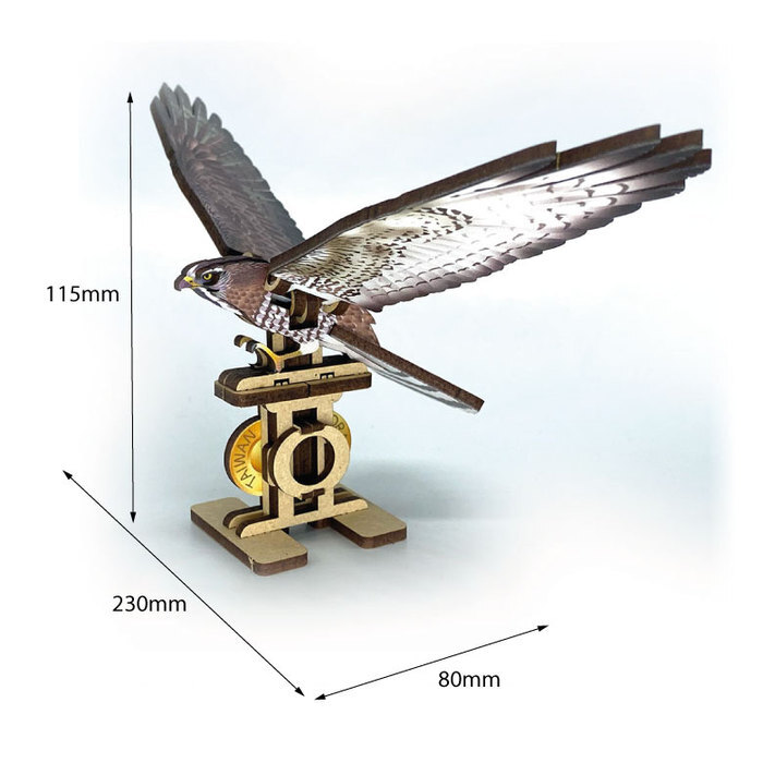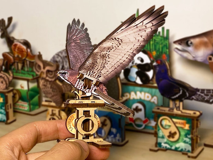 灰面鵟鷹是一款獨特的台灣特有種木質拼圖,簡單的機械結構及可愛的造型,適合8歲及以上小朋友動手組裝。
