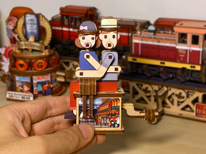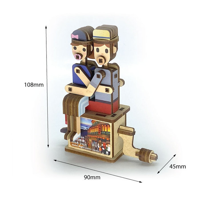 九份老街親熱情侶,簡單的機械結構及可愛的造型,適合10歲及以上小朋友動手組裝。