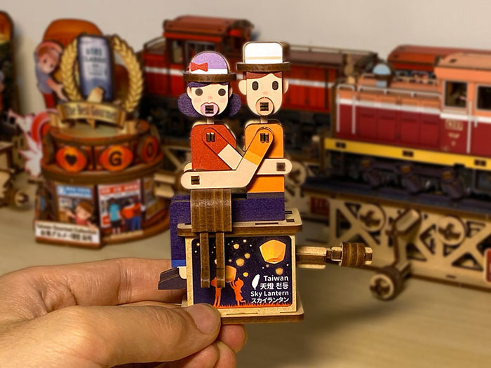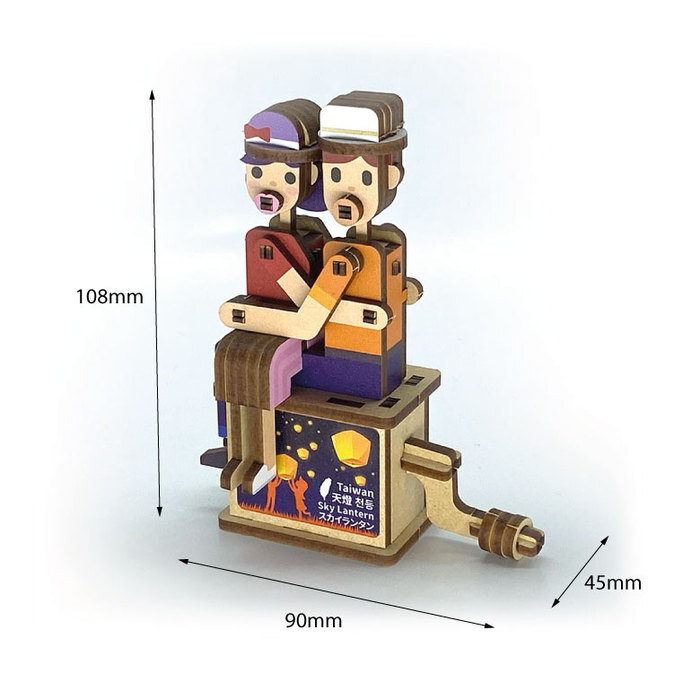十分老街親熱情侶,簡單的機械結構及可愛的造型,適合10歲及以上小朋友動手組裝。