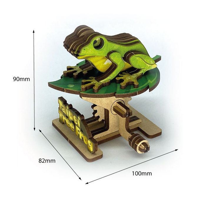 台北樹蛙是一款獨特的台灣特有種木質拼圖,簡單的機械結構及可愛的造型,適合10歲及以上小朋友動手組裝。