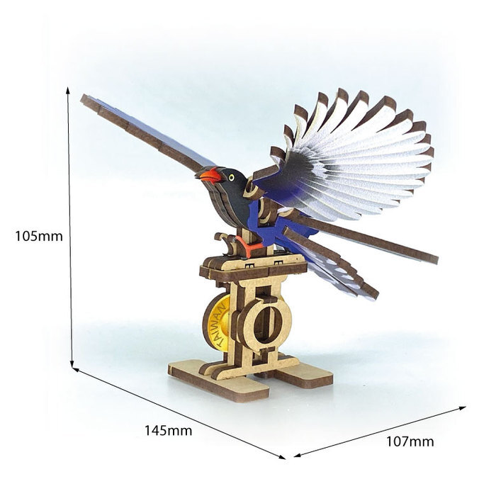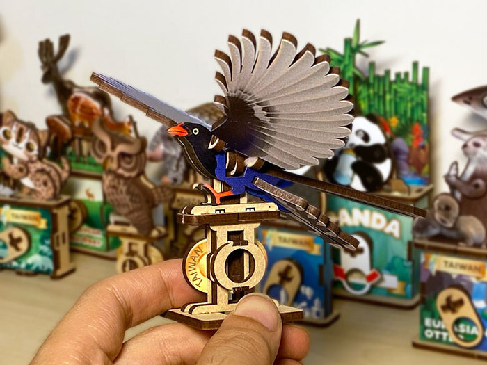 台灣藍鵲是一款獨特的台灣特有種木質拼圖,簡單的機械結構及可愛的造型,適合8歲及以上小朋友動手組裝。