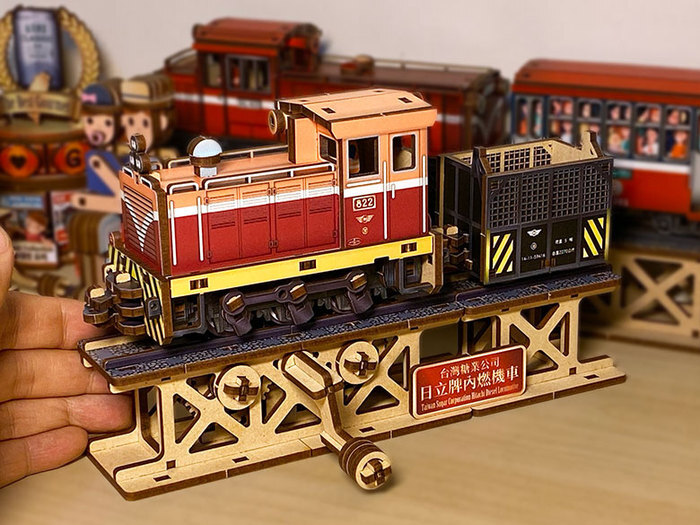 台灣糖業公司日立牌內燃機車,運用齒輪組及連桿結構忠實呈現車輛運行動態,彩色印刷還原車體細節,值得您耐心組裝與收藏。本產品適合12歲及以上用戶。