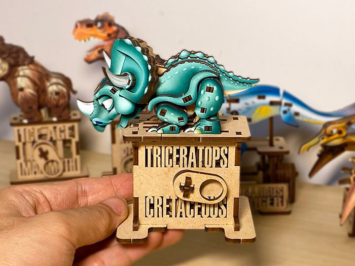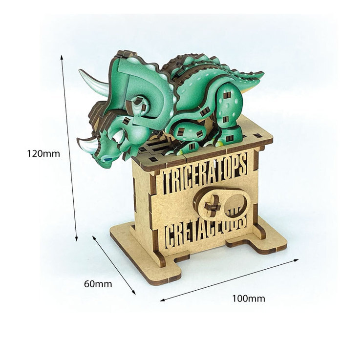 三角龍是一款獨特的古生物立體可動木質拼圖,簡單的機械結構及可愛的造型,適合12歲及以上小朋友動手組裝。