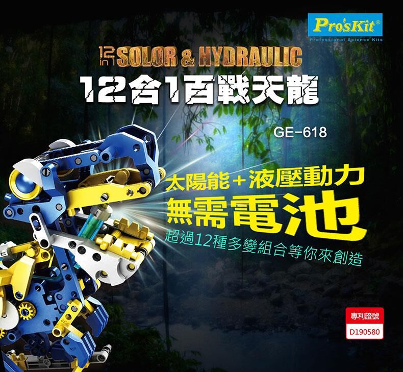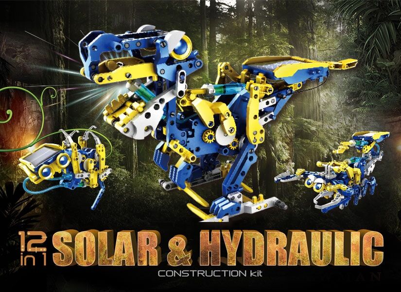 DIY模型機構設計,提供12種造型模板變化,結合太陽能與液壓動力設計,讓動作擺動更活潑,一次體驗兩種科學原理大滿足!喜歡恐龍、猴子、還是鱷魚?更多造型等你來挖掘,創造自己的侏羅紀公園!
