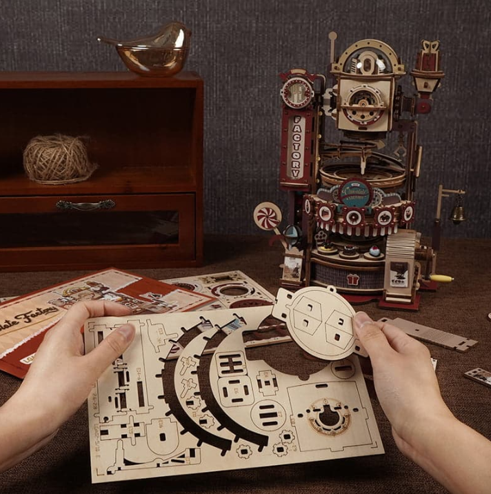 ROKR 從經典童話汲取靈感,將彈珠軌道與巧克力工廠結合,打造出一款復古風格、趣味十足的糖果主題桌面彈珠玩具。