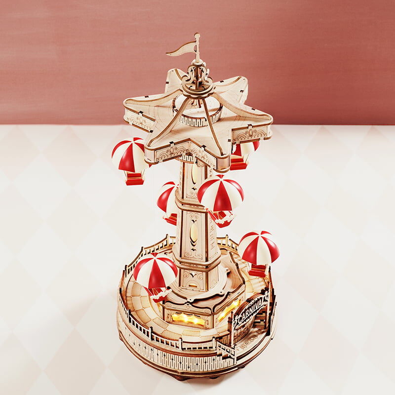 以傳動機構為基礎,經典遊樂設施——降落傘塔,以歐式復古風格設計,搭配優美音樂,喚起你在遊樂園的歡樂回憶。