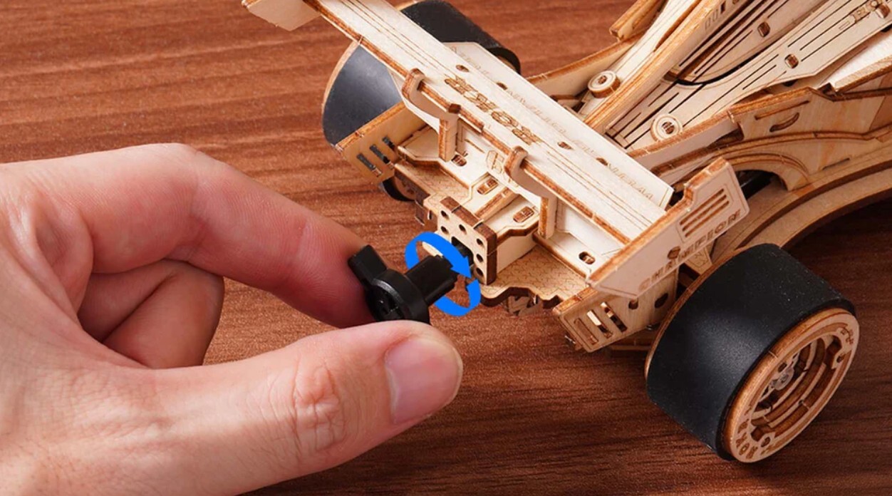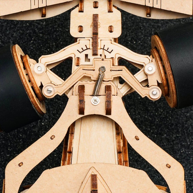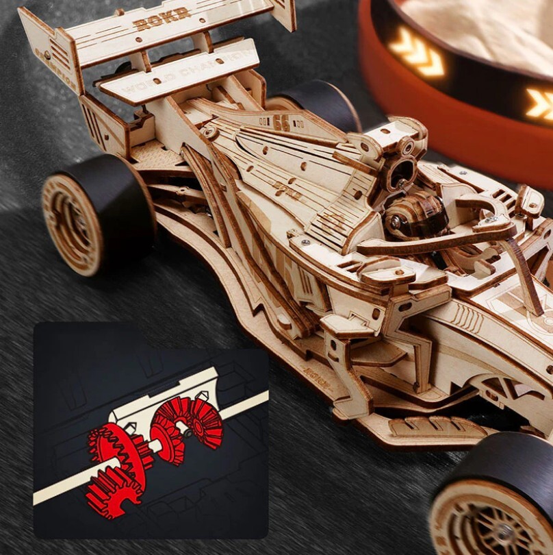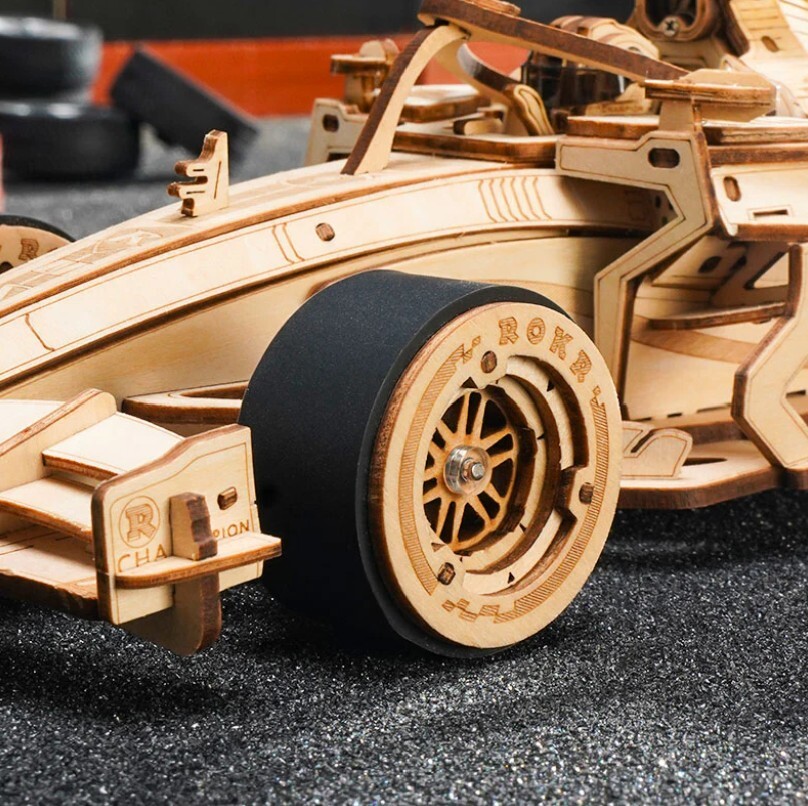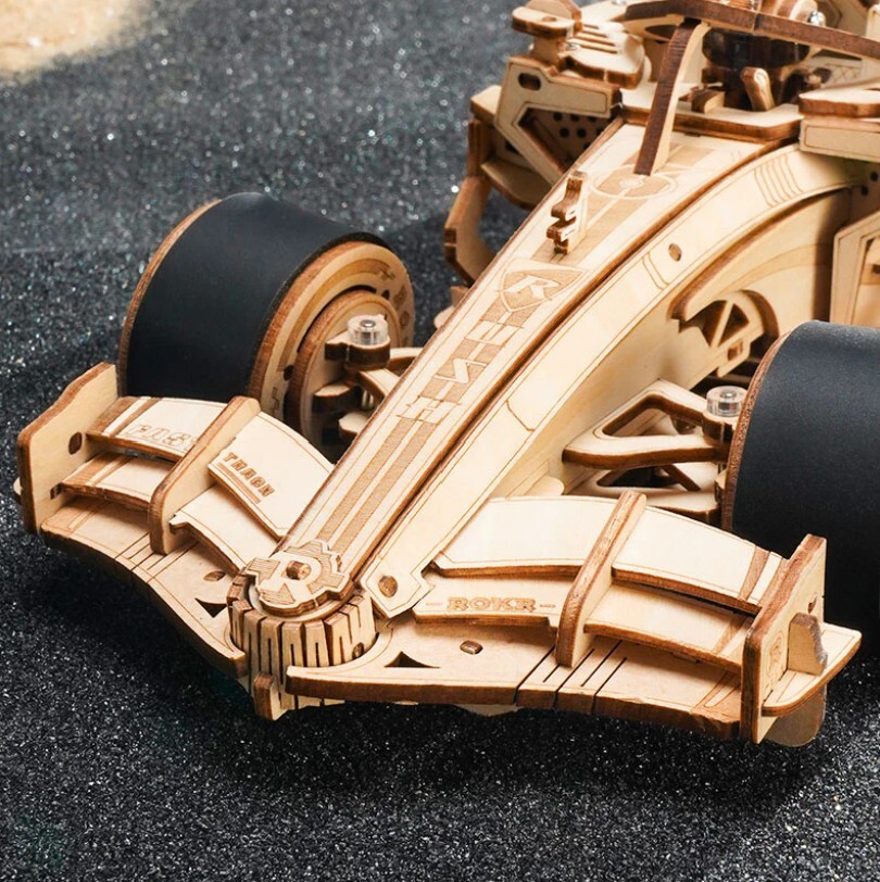以 F1 賽車為靈感,流線型車身、精緻木質結構,包含前翼、後擾流板、尖頭設計、低底盤與緊湊駕駛艙,細節滿分。