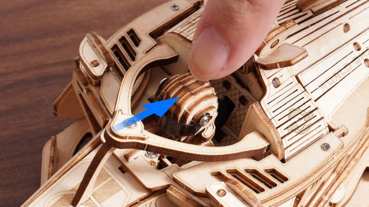 先將發條上緊,讓彈簧儲存足夠能量,再微調車身角度