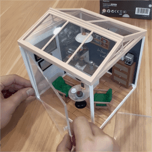 本系列提供兩種配件包:屋頂與防塵門。每包內含 1 件,需另行選購。屋頂可完善房屋結構,防塵門則有助於保持室內整潔。