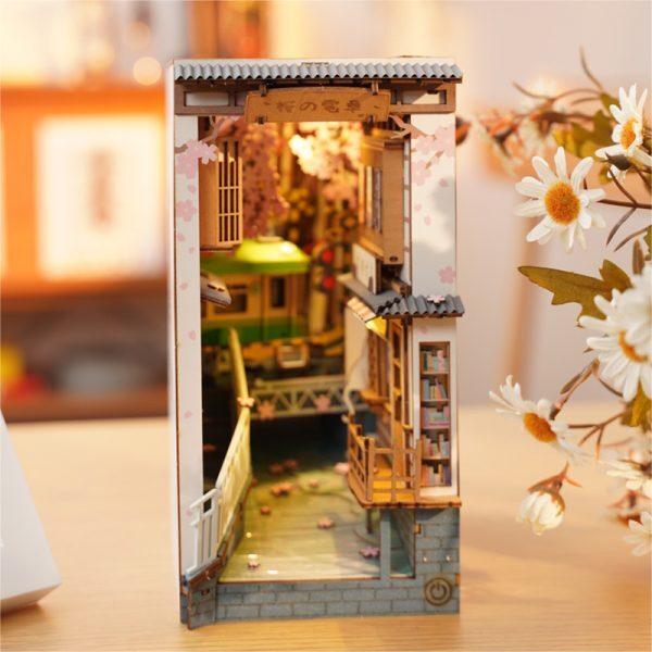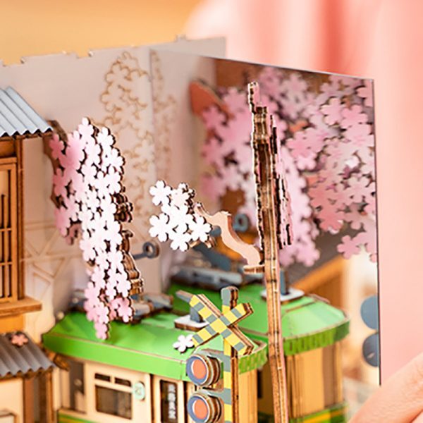 一位年輕女子走進書店,翻閱著架上的書籍,一本封面印有櫻花的書吸引了她的目光。她翻了幾頁,便決定買下。